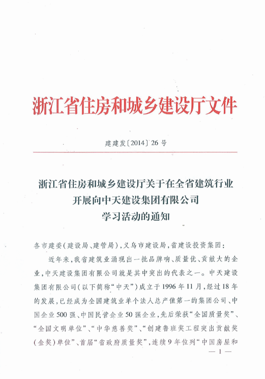 《浙江省住房和城乡建设厅关于在全省建筑行业开展向六合联盟建设集团有限公司学习活动的通知》